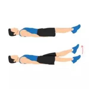 - قم برفع قدميك الاثنتين قليلا عن مستوى الأرض مع بقاء الساق بوضع مستقيم.